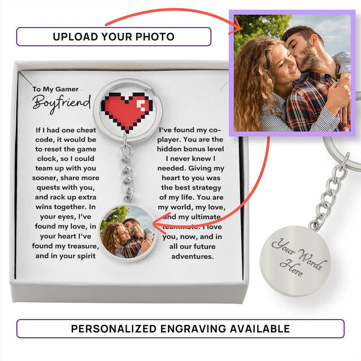 This awesome gamer couple keychain allows you to add your favorite selfie or a sweet pic of the 2 of you and add a message on the back that's more legendary than a rare in-game item.