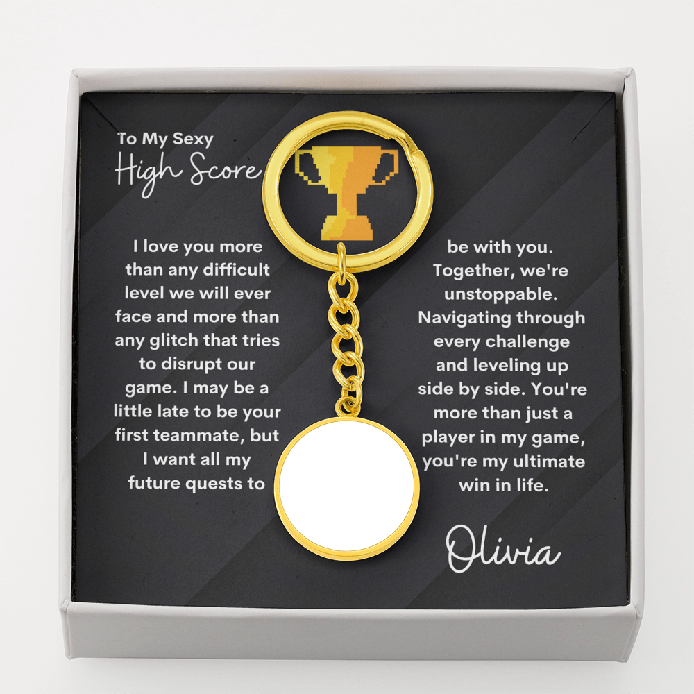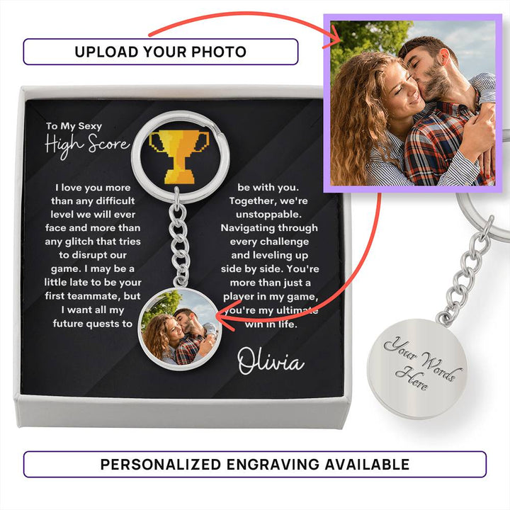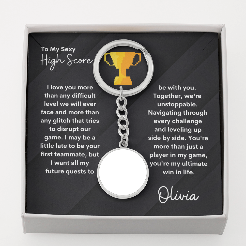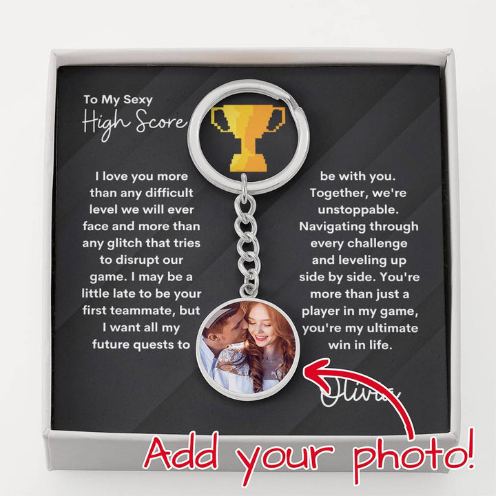 Get this cool "Gamer Boyfriend Photo Keychain" for your sexy high score gamer boyfriend as a Video Game Gifts For Boyfriend, Christmas, or anniversary gift.